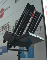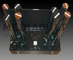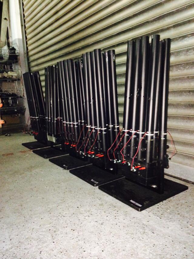 Unsere Multi 8 Systeme arbeiten mit elektrischen Druckluft Abschussrohren. Diese beinhalten eine elektrisch auslösbare Druckkartusche die das Material je nach Rohrgröße zwischen 10 und 30 Meter in die Luft schießt. Pro Multi 8 System lassen sich bis zu 8 Druckluftshooter abfeuern. Die Steuerung erfolgt über ein drahtloses, digitales Pyrotechnik Abschussystem mit sicherer Funkübertragung mit bis zu 1000 Kanälen. Die Multi 8 Systeme lassen sich in beliebig zusammengestellter Menge über den Controler steuern und sind untereinander kompatibel. Es kann jeder Kanal einzeln angesteuert werden, oder auch viele gleichzeitig, und das sowohl nach Musik vorprogrammiert oder manuell vor Ort. Die Systeme lassen sich sowohl stehend auf einer Bodenplatte montieren, als auch hängend an Traversen und Stativen. |