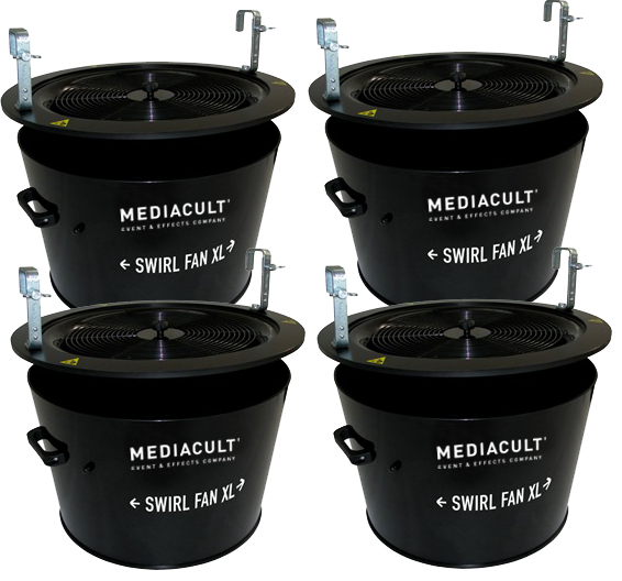Der Swirl Fan ist ausschließlich für die hängende Montage ausgelegt und lässt sich über einen Dimmerkanal steuern. Über das integrierte Gebläse wird ein gleichmäßiger und langer Konfettieffekt erzeugt, dessen Intensität von leicht bis stark gesteuert werden kann.